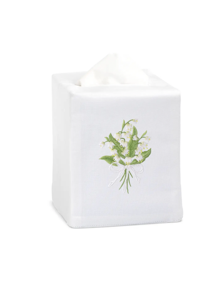Lily of the Valley Embroidered Linen Tissue Box Cover